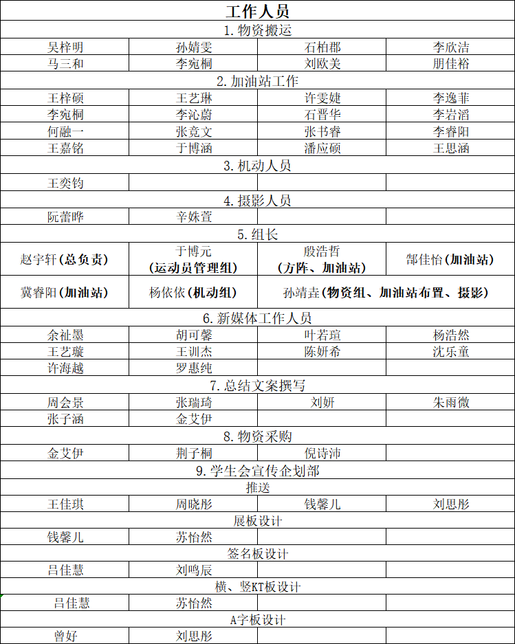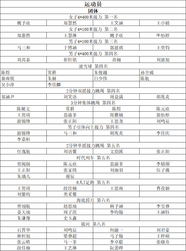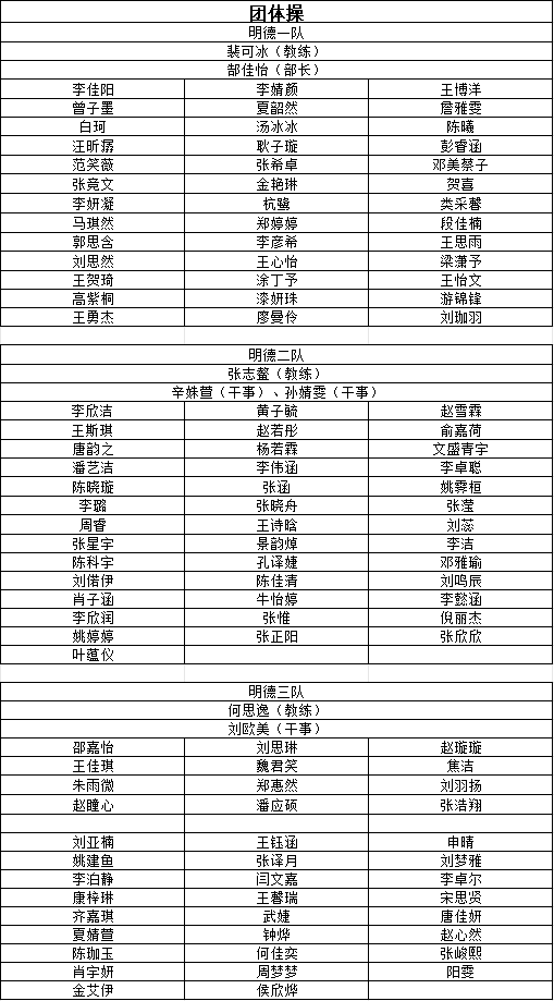 附:工作人员、运动员、团体操队员、方阵队员名单