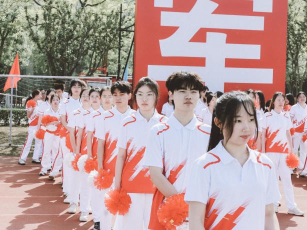 本次校运会不仅是一场运动竞技的盛会,更是一场青春与拼搏的约定。就在万众瞩目的入场式上,明德书院方阵的登场,用行动点燃全场气氛。他们步伐坚定只因信念在胸;他们队形整齐宛如利剑出鞘。一袭红白相间的制服,在阳光下熠熠生辉,动作整齐划一,如春雷乍响,震撼人心。