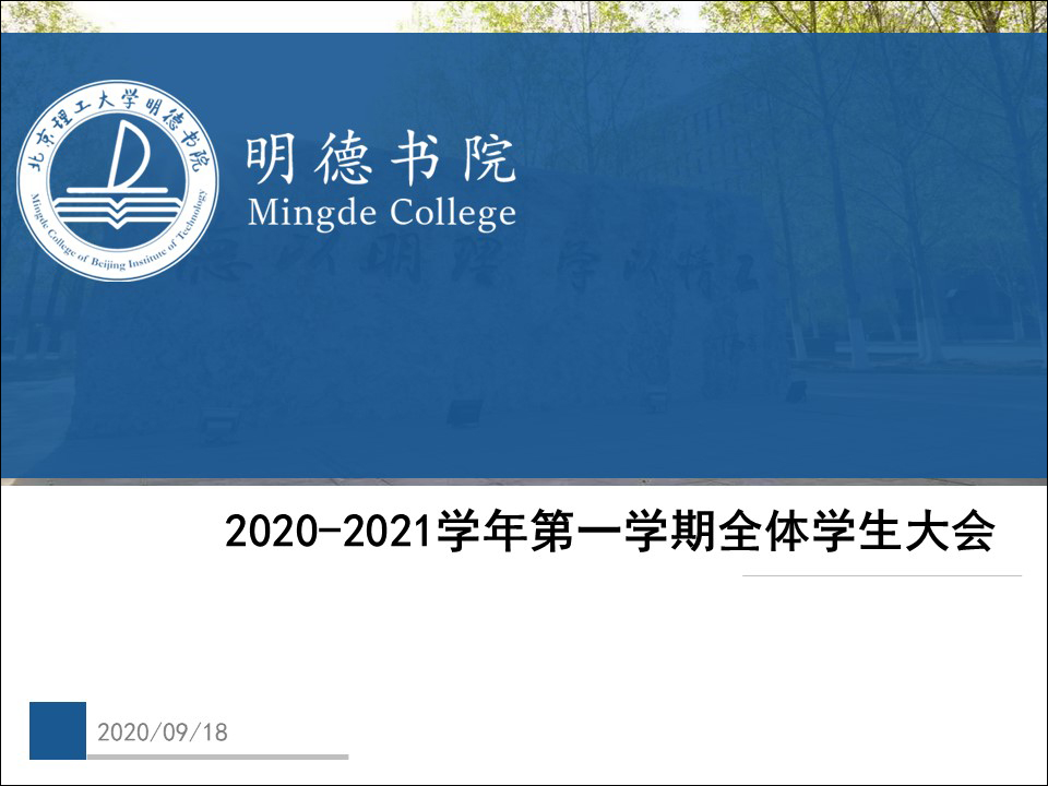 2020年9月18日,明德书院全体学生大会在线上召开。明德书院辅导员,2018、2019级全体学生参会,会议由辅导员刘敏主持。