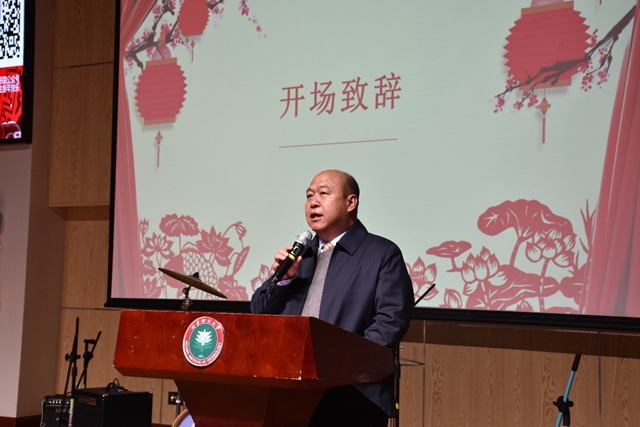 元旦晚会暨学生表彰大会在《2018年,我们这样走过》的回忆中拉开帷幕。明德书院院长曾粤兴代表书院致辞。他充分肯定了在师生共同努力下明德书院2018年的成绩,向始终支持书院发展的人文与社会科学学院、法学院、外国语学院领导及全体老师表示感谢,向全体“三全”导师表达敬意,向全体书生致以新年的祝福。